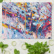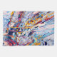 A dynamic explosion of vibrant colors and swirling patterns creates a sense of movement and energy. The composition is filled with a variety of shapes and layers, evoking a feeling of chaos and creativity.