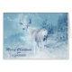 Skicka lite Colorado till dina vänner och familj i Julhelg, med det här fantastiska fotot på en buck hjort som står vid kant i en bergsskog där snöflingor glider ner runt honom. Texten i blått vid grund kan ändras till vad du vill, liksom texten på insidan.