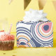 A vibrant abstract pattern featuring layered organic shapes inspired by fruits, outlined with flowing contour lines.