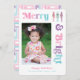 God och ljus! Ett färgat och roligt Helgdagar-fotokort med afrikanska Nutcracker-soldater från leksak i pastelluniformer för rosa, mynning och lilac. Vattenfärgen inslag hade ursprungligen målats av mig på 100% papper bomull innan den skannades och arrangerades/formaterades digitalt. Orden "Merry & Bright" finns i ett retroteckensnitt. Det omvända utseendet hos ett halvsekel inspirerade geometriska "polkagrisar" mönster i pastel färg.