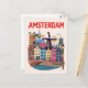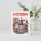 Celebrate the charm of the Netherlands with this bright and cheerful Amsterdam postcard. The design features a colorful illustration of the city's iconic canal houses, a classic Dutch windmill, and a quaint bridge. With its vibrant color palette and distinctive architectural style, this piece perfectly captures the unique, energetic spirit of Amsterdam. It's ideal for sending to friends, commemorating a trip, or adding a fun, travel-themed touch to a collection or gift. A perfect souvenir for lovers of European travel, whimsical art, and beautiful city skylines.