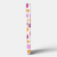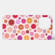 Colorful flower pattern in yellow, orange, pinks, lilac and reds on a cream color background.