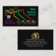 An all black cover features a creative colorful rooftop design. To its right lies your business name. At the base of the card is the contact details wit an array of gold painting tools icon.