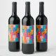 Colorful cats pattern vinflaska etikett
