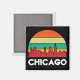 Unik och trendig Chicago Vintage Cityscape magnet som visar den amerikanska stadens skylt med all berömd torn och markeringar i Illinois och vintage sunset. Underbar presentidé och souvenir.