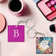 Öka din vardag med vår anpassade Christian Bible verse keychain. Med inspiration från Art nouveau elegans har den här fina designen en levande blommigt motiv och en serenblå fågel som kapslar in romer 5:8. Varje nyckelkedja, som byggs upp i detalj, fungerar som en påtaglig påminnelse om Guds ovillkorliga kärlek. Anpassa till ditt monogram och välj färg från ett intervall av bakgrundsbilder som matchar stil. Oavsett om det gäller dig själv eller en omhuldad gåva, låt den här nyckelkedjan vara en ledstjärna för tro och skönhet i din dagliga resa.