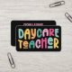 Networking with parents who require care services? Hand out our “Daycare Teacher” call cards featuring a colorful typography design on a black background. Names and details can be edited by selecting “personalize this template”. If you have any questions or requests regarding this design, please contact us via the chat; we’d be happy to help!