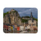 Colorful Dinant City view with its citadel and Church by sunset, Belgien