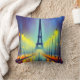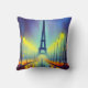 Färgfull accent dekorativ kudde, med bilder av Eiffel Torn i Paris på natten. Underbar presentidé för alla.