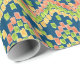 En rulle av chic, färglös Gift Wrapping Papper, med en etnisk Ikat mönster i terracotta, gyllene gult och grönt på en djup blå bakgrund. I Posh & Painterly 'Ikat'-samlingen kan du enkelt anpassa den här presentationen genom att rotera eller ändra storlek på Ikat mönster-plattan och den passar alla storleka.