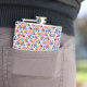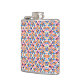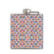 "Colorful flask with geometric pattern in blues, pinks, and oranges shown from front and left angles, conveying a vibrant, playful tone."