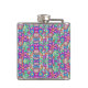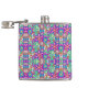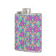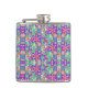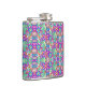 Colorful flask with vibrant geometric and floral patterns in pink, blue, and green, showcasing a lively and playful design on its front and side.