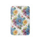 Färgämnen blommor kollapsar sömlöst mönster. Blått lila och gula blommor över vit bakgrund.