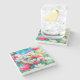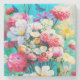 A captivating display of colorful flowers is set against a soft teal background. Butterflies can be seen fluttering among the blooms, adding dynamic movement to the scene.