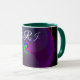 This modern colorful coffee mug features a geometric fused center circular theme. Personalize this product to your preference with custom text. Additional mug colors are available.