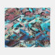 An intricate geometric pattern featuring a mix of triangles and lines. The composition includes a vibrant array of blues, pinks, and blacks.