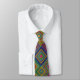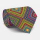 Colorful geometric pattern tie displayed front and back on a white background. Features diamond shapes in vibrant colors like orange, pink, and blue.