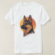 German Shepherd dog portrait with bold orange sun background. Vibrant, stylized artwork captures alert expression, rich fur texture, and loyal, protective canine character for editorial or decor.