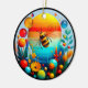 • This charming ceramic ornament colored glass abstract design captures a vibrant bee soaring over a colorful fantasy landscape.