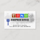 Cover features a paint splatter design with colorful handyman tools icon at the top. The tools can represent some of the services that you offer e.g. the hammer can represent renovation, the power plug for electrical, the faucet for plumbing and the trees for landscaping. Near the blue brush that is about to commence work lies the business name "HANDYMAN SERVICE" which you can change alongside the contact details.