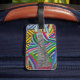 colorful hatches and herringbone collage bagagebricka