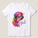 This stylish girls’ t-shirt features a colorful woman illustration on the front with “HOLI” and “HAPPY HOLI” on the back – perfect for festival vibes and playful expressions.