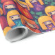 This adorable wrapping paper features a pattern of colorful cute Japanese kokeshi dolls.