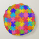 Söt ljusa färger om ett pussel mönster täcker denna fantastisk runt kuddar. Detta är också symbolen för autism. Klicka på anpassa den om du vill lägga till text.