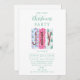 A cheerful pastel Christmas invitation featuring the word “JOY” in a bold patchwork-style design with candy stripes, bows, and holiday tree accents. The mix of pink, teal, and mint brings a playful modern twist to traditional festive colors — perfect for families, office celebrations, or anyone who loves a bright and happy holiday aesthetic.