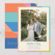This modern photo wedding invitation features a colorful geometric border and a large space for your engagement photo. The clean, minimal layout keeps the focus on your names and wedding details while the bright colorblock frame adds a fun contemporary touch. The back includes a QR code so guests can easily visit your wedding website for RSVP and additional event information. Perfect for couples planning a modern celebration with a fresh, stylish look.
