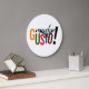 Bryt isen med den här klockan, som har färgstark "Mucho Gusto" (spansk för "trevligt att träffa dig"), ord-konst på vit bakgrund. Perfektens vägg-tidsstycke för foyer, kök eller matrum, eller var som helst du vill välkomna besökare!