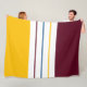 Den här färgfulla filten i fleece har ett modernt, strippat mönster i lila, gult och vitt rand.