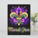 Colorful Neon Mardi Gras Fleur de lis Julkort