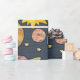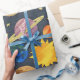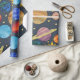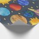 A bright, playful pattern featuring watercolor planets and stars on a dark background. Made to feel fun and full of cosmic energy.