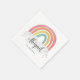 Färgregat av regnbågskalligrafi i Barns födelsedag Napkins har ett regn av hand plockade i nyans av rosa, orange, gult och turkos och ett kalligrafi av trendiget namn.