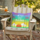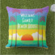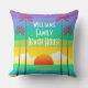 Dekorera bassäng eller tålamod med strandkudden i roligtens personlig med en färgstark solnedgång med regnbåge himlar, stiliserad konst deco stil handflatan träd och namn för att göra det till ditt eget! Lila, akvarier, turkos, kalk och gult tillför en juikaktig stänk till din tropiska sommardekor.