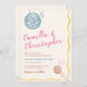 Celebrate your love with a touch of retro charm ✨ This fun and stylish wedding invitation features a warm neutral background accented with playful disco-inspired line art, musical details, and soft wavy borders. The hand-lettered script typography adds a romantic, personal feel, perfectly balanced with clean, modern text for your event details.