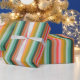 This wrapping paper features a retro multicolor vertical stripe design in warm, saturated tones. The playful palette blends mustard, sage, coral, dusty teal, and cinnamon for a nostalgic yet modern look. It works beautifully for Christmas gifting, birthdays, and year-round celebrations. A great option for color-loving families who want a bold, cheerful wrapping style.