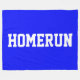 This sporty baseball design features white athletic HOMERUN text against bright royal blue background.
