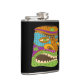 Illustration of Colorful Tiki Head in Exotic Mood, Funny Black Flask