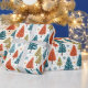 Make your holiday gifts merry and bright with this colorful wrapping paper! Stylized evergreen trees in blue, green, gold, and orange, interspersed with snowflakes, gives a retro-modern look to this paper.
