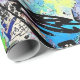 Colorful urban graffiti patchwork pattern wrapping paper featuring bold abstract blocks, expressive brush strokes, scribbles, stars, and mixed-media textures in bright blue, yellow, pink, orange, and black. Energetic and edgy with a modern street art aesthetic, this seamless design is ideal for graffiti art lovers, maximalist style fans, creative teens, and contemporary art enthusiasts.