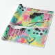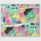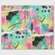 Colorful urban graffiti patchwork pattern wrapping paper featuring bold abstract blocks, expressive brush strokes, scribbles, stars, and mixed-media textures in bright blue, yellow, pink, orange, and black. Energetic and edgy with a modern street art aesthetic, this seamless design is ideal for graffiti art lovers, maximalist style fans, creative teens, and contemporary art enthusiasts.