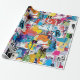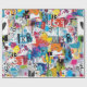 Colorful urban graffiti patchwork pattern wrapping paper featuring bold abstract blocks, expressive brush strokes, scribbles, stars, and mixed-media textures in bright blue, yellow, pink, orange, and black. Energetic and edgy with a modern street art aesthetic, this seamless design is ideal for graffiti art lovers, maximalist style fans, creative teens, and contemporary art enthusiasts.