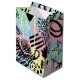 Colorful urban graffiti patchwork pattern gift bag featuring bold abstract blocks, expressive brush strokes, scribbles, stars, and mixed-media textures in bright blue, yellow, pink, orange, and black. Energetic and edgy with a modern street art aesthetic, this seamless design is ideal for graffiti art lovers, maximalist style fans, creative teens, and contemporary art enthusiasts.