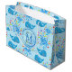 Cute blue whales mönster med färglös stänk-pojke i vatten med droppar i olika färg och en ljusblå, genomskinlig rund bricka med ett namn monogram. Anpassa genom att ändra namn och initiera eller anpassa ytterligare för att lägga till din egen beröring.