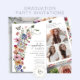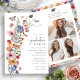 Inbjudan till färgat Wildblomfoto Studenten. Gratulera till student resa med den här chicen med en elegant av handmålad bukett av vilda blommor i mörk blått, ljusa rosor, rosa, guldfärgad gult, vibrerande rött och sage grönt. Med den här designen, som kompletteras av ett dedikerat utrymme för ett personligt fotokollage, kan du anpassa meddelandet, färg och bakgrunden till en inbjudan som utstrålar upphetsning och kreativ - ange scenen för en minnesvärd händelse!
