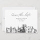 Modern Columbus svart och vitt sparar datuminbjudan. Framsidan visar en bedövande skiss som anger perfektens ton för bröllopsdagen. Lägg till ett eget foto på baksidan och anpassa texten så att den blir din egen. Ange Zazzle-designen verktyg för ytterligare designanpassningar.