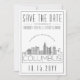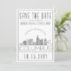 En unik "save the date"-inbjudan för bröllop som äger rum i den vackra staden Columbus i Ohio. Denna inbjudan har en stiliserad illustration av stadens unika siluett med dess namn under. Detta följs av information om er bröllopsdag i en matchande öppen linje-stil. Baksidan av inbjudan har en djupgrå färg för att komplettera utseendet och känslan. Alla enskilda element på inbjudningskortet är upplåsta så att ni kan ändra alla nödvändiga detaljer, till exempel teckenstorlek, stilar och mer, genom att använda anpassningsfunktionen. Ni kan lägga till ett foto på baksidan och lägga till ett svart-vitt-filter på det.