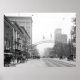 Vintage foto av Columbus, Ohio, High St. norr från State Street. Underbart gammalt foto som visar hästdragna vagnar, gatubilar och antika bilar. Fotografi taget mellan 1900 och 1910 och publicerat av Detroit Publishing Company. Originalmedium: 8 x 10-tums negativt glas.